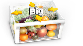 Samsung's side-by-side refrigerators allow you to store fruit and vegetables in a large capacity big box which can easily be pulled out. The big box helps free up shelf space and makes it easier to access all your food.