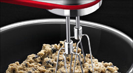 With a remarkable nine speeds, this mixer can gently break apart chunky ingredients without turning them to mush. It will also cream your butter and sugar with effortless ease. Changing speeds is as simple as pressing the UP or DOWN arrow on the soft grip handle.