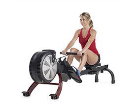 Water rowing machines use the density of water to increase your friction level. The harder and faster you pull a water rower, the greater the resistance, which makes for a harder, more intense workout. And the final type is the air rower. The air rowing machine uses the force of your row to spin a flywheel that sucks up air and causes resistance. Again, the faster you row, the faster the flywheel spins and the greater the resistance.