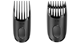This beard trimmer comes with two detachable trimming combs that provide 39 different length settings between 1-20mm lengths.