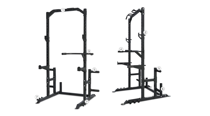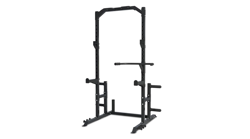 If you don’t have room for a full power cage, this half rack is the perfect solution for all your barbell and bodyweight exercise needs.
