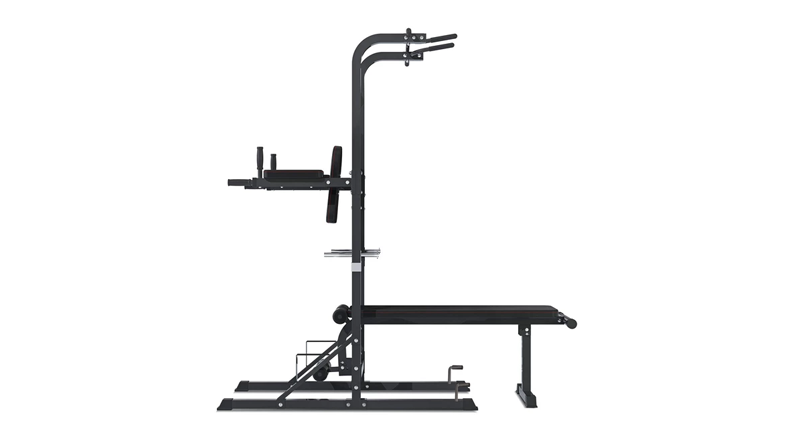 Perform a wide variety of exercises and movements from chin-ups to push-ups to target different muscle groups and give your body a complete workout. The exercise bench can be changed to a decline for core-strengthening crunches and it can be switched to a flat bench for bench presses. Fold up the bench and use the unit for leg raises and the padded back and forearm rests will ensure a secure and stable exercise. This power tower is made with a solid steel frame to withstand high intensity workouts.