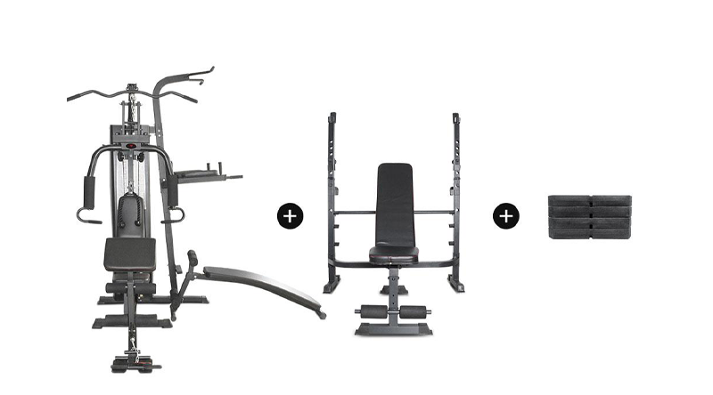This ultimate package to complete any home or commercial gym. This includes a GS6 multi-station, a sit-up bench, power tower, bench press, squat rack and an additional 25kg weight stack. You can have it all with this package.