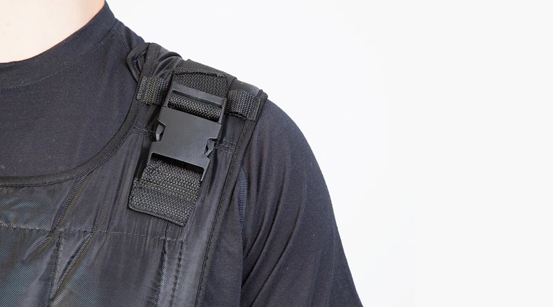 This handy buckle allows you to remove the weight vest without having to lift the vest over your head, reducing the risk of injury.