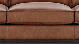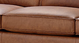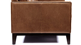 The classic brown leather upholstery adds warmth and sophistication, while the square track arms and rectangular cushion bring clean, simple lines. Rest in total comfort thanks to the high-resiliency foam cushions and be supported by the hardwood laminated frame.