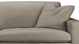 The stunning taupe leather upholstery and top stitching details can elevate the design of contemporary interiors. The square arm tracks offer generous resting space and the loose seat cushions with luxurious filling lets you snuggle up in bliss. Sit back and unwind in complete comfort and sturdy supports thanks to the hardwood laminated frame.