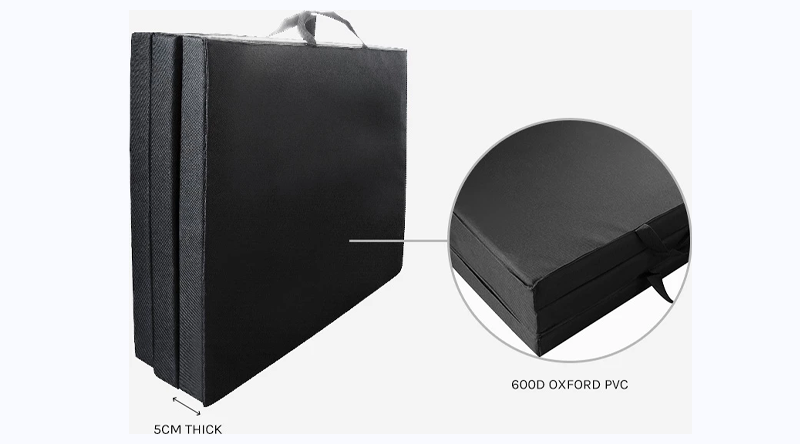 The thick padding provides exceptional comfort and cushioning while the durable Oxford PVC ensure longevity and easy cleaning. The mat is designed for portability so you can easily take it to your favourite exercise class. Its foldable feature lets you free up space at home or in the gym when the mat is not in use.