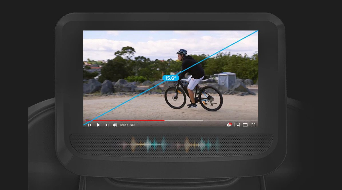 The 15.6” LCD screen features a stunning 1920x1080 resolution and can connect with mobile devices through Bluetooth, USB, or WiFi for video playback. Use the built-in speakers or plug in your headphones to pump tunes as you workout.