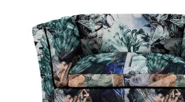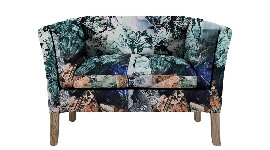 The eye-catching patterned velvet consists of beautifully arranged floral motifs with washes of colour. This striking fabric complements the modern design with touches of Scandinavian and mid century styling. This cosy design will wrap you up in a bouquet of comfort. The fibre filling with the S-spring and elastic webbing provides comfort and support to help you unwind and relax.