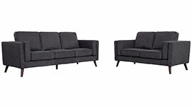 With squared armrests and cushions, the clean and simple lines on the Mackenzie set elegantly complements a wide variety of aesthetics and style. This modern silhouette perfectly pairs with the dark grey licorice fabric colour and dark timber legs. This creates a cohesive and neutral look so you have the perfect canvas to build on.