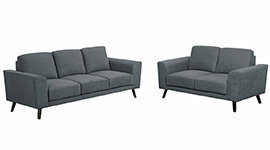 The charcoal grey colour adds a touch of minimalist elegance to any space. And the dark timber legs not only provide durable support, but completes the modern look of this sofa set from Ostro.