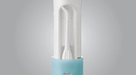 This water flosser emits water streams to clean between teeth and hard-to-reach areas. You can adjust the pressure setting, making it ideal for those with sensitive teeth and gums. The device is completely washable so it is easy to maintain and keep clean.