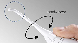 The flosser’s nozzle is designed to help water easily reach deep interdental areas. You can adjust the angle and change the water direction by simply turning the nozzle.