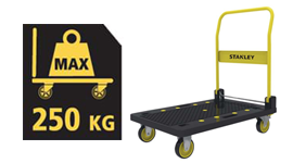 This heavy-duty platform trolley from Stanley can carry a load weighing up to 250kg. This robust equipment can help lighten your load, whether you need to move to a new place, or you want to rearrange the furniture around your home. The large polypropylene platform lets you load bulky items such as appliances or furniture, and the handles can be folded to better fit in storage.