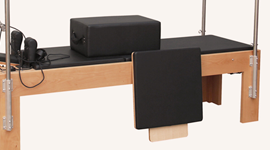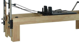 This reformer is equipped with a smooth and quiet 8-wheel carriage system for a secure and comfortable workout. Four vertical wheels support the carriage while the other four sit horizontally to guide the carriage along the rail.