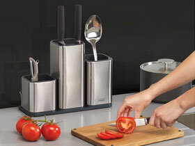 Chopping board sets for different foods, eg meat and fish, will raise the game on your kitchen hygiene and won't transfer unwanted flavours to the next item. These boards tidy away into upright slots in a holder on the benchtop, so they won't slide or fall over when you are looking for something else in the cupboard.