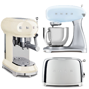 Smeg's instantly recognisable retro style, made famous by their distinct FAB28 refrigerator, has been refashioned for a vibrant range of small appliances. Adding flair and elegance to your countertop, you can make breakfast or prep ingredients in style. Elegant lines and rounded forms bring a sense of nostalgia, while offering modern solutions for a modern kitchen. Designed to stand out from the rest, while perfectly complementing one another, Smeg appliances are made for matching. Discover your style and explore the Smeg Small Appliances collection.
