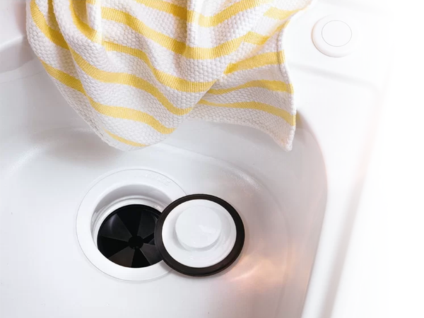 A food waste disposer that requires a cover or stopper over the sink opening before it can be turned on. | Reduces risk of foreign objects ending up in the disposer Usually larger, more powerful and quieter Convenient 'air switch' often comes standard A good choice for the safety conscious | Less intuitive to use | Disposing of larger food scraps such as bones |