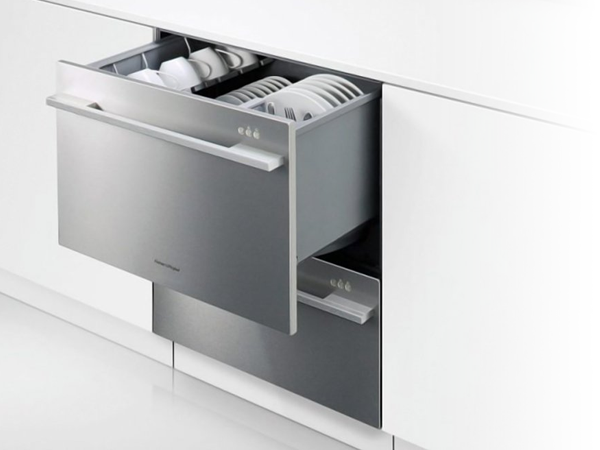 A compact dishwasher that pulls out like a filing cabinet. Exclusive to Fisher & Paykel | Fits into small spaces Two-drawer models can run different wash settings at the same time Ergonomic design is easier to load and unload | Doesn't fit in standard-size cavities Needs to be professionally installed into your cabinetry | Apartment living People with mobility problems |