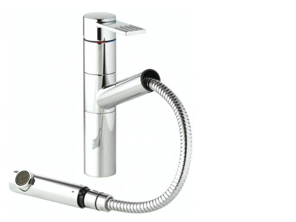 A tap where the spray head can be pulled out on a short length of hose, providing additional flexibility when rinsing dishes | Handy for washing bulky pots and pans Often provides several different water flow options | Usually more expensive than mixer taps | Large sinks |