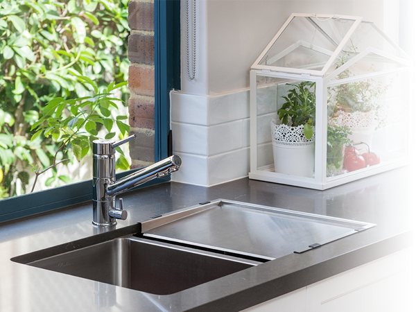 A sink designed to be inserted into the bench from above, with the 'lip' of the sink resting on the countertop. | Provides extra protection for your benchtop - great for washing up large pots and pans Sealant between the underside of the sink and the benchtop ensures the join is impervious to moisture Affordable and durable | The lip of the sink sticks out, breaking up the smooth line of your benchtop | Timber and laminate benchtops |