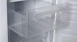 The 6 deep plastic bins ensure you have the ability to easily organize your frozen foods to better suit your lifestyle. The bins are clear and easily slide out with handles for better visibility and easy loading and unloading of groceries.