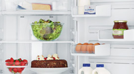 The fridge's glass shelves are adjustable allowing you to rearrange the shelving to more efficiently store food and drink of different sizes. And to help keep your fruits and vegetables fresher for longer a humidity-controlled crisper is also available.