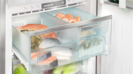 The Liebherr BioFresh Plus function extends the shelf life of your fruits, vegetables, dairy, fish, and meat. The compartment provides the optimal temperature for preservation and can be electronically adjusted to the exact degree for the type of food being stored.