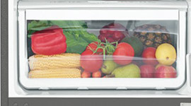 This refrigerator features spillsafe glass shelves that can be adjusted to better organise your food. Additional storage options include door bins in a variety of sizes plus two half-width crisper bins with humidity control to create the ideal conditions for keeping fruit fresh and veggies crisp.