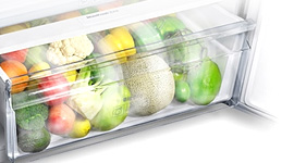 Antibacterial coating helps keep the fridge's interior free of bacteria while rippled bases on the crisper drawers help protect fruits and vegetables from condensation. And for greater convenience at home the fridge's safety glass shelves are adjustable to store more food and drink while the freezer includes handy twist ice trays.