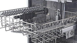 The dishwasher is designed with a smart internal layout that makes loading and unloading dishes, cutlery, and cookware simple. The cutlery tray and height adjustable upper basket give you the flexibility to fit in a diverse range of items.