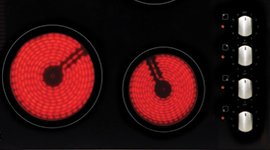 The fast heat-up elements of the Arc electric cooktop are managed via straightforward control knobs, and light up red when hot for added safety. The elegant ceramic glass surface is also easy to clean.