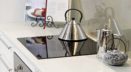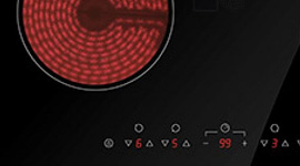 The fast heat-up elements of the Arc electric cooktop are managed via simple touch controls and light up red when hot for added safety. The elegant ceramic glass surface is also easy to clean.