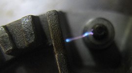 The cooktop uses electronic ignition, so you can light a burner simply by pressing in the dial, and giving it a turn.