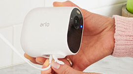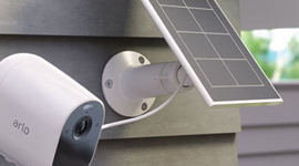Easily recharge your floodlight camera with the Arlo outdoor magnetic charging cable. Or, go solar and use Arlo’s panel to sustain battery life.