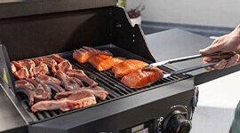 The heart of the EQ is its powerful dual electric elements and independently controlled cooking zones, giving you precise temperature management for everything from high-heat searing to low-and-slow roasting. A digital display with real-time temperature readouts and two integrated meat probes ensures accuracy, while the intuitive control knobs make operation seamless. The BBQ reaches a sizzling 375°C in just 21 minutes with the lid closed and can surpass 440°C, delivering impressive cooking performance in a compact footprint.