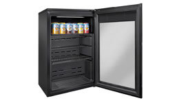 Designed with style in addition to function, this sleek fridge complements any household. The black finish and black glass door with stainless steel door frame makes a clever fashion statement.