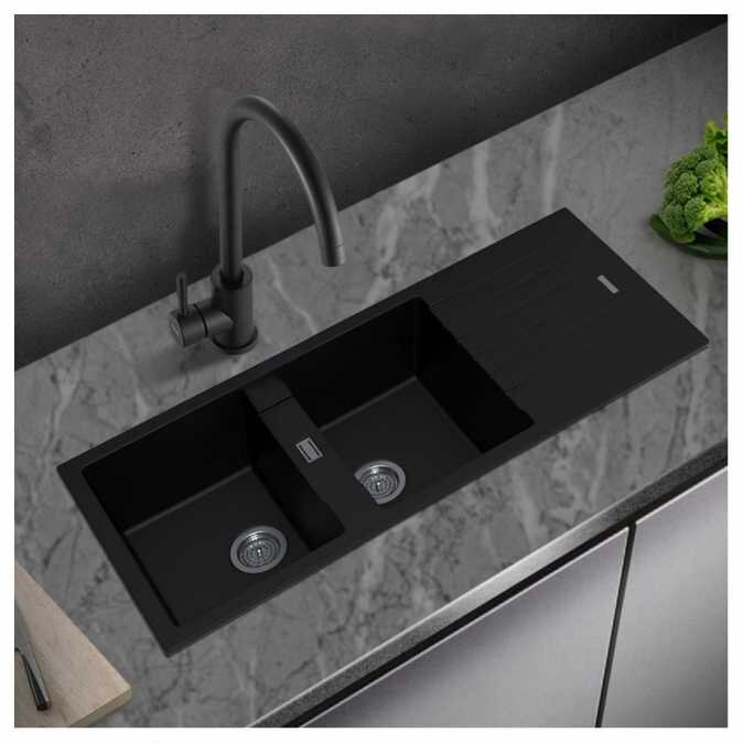 With a built-in drain and an ultra-durable surface, this sink offers more than just practical value—it creates a space that feels luxurious and thoughtfully designed. The twin basins offer generous capacity without compromising on style, while the stone-inspired aesthetic introduces a calming, organic element to the kitchen environment.