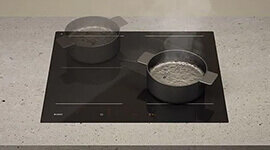 When using extra-large pots and pans, the Bridge function in designated zones expands the induction cooking area and gives total coverage for bigger dishes, grill pans and teppanyaki.