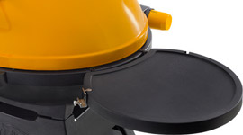 On either side of the cooking area convenient shelves add extra working space. These shelves are removable for easier storage and also include hooks where you can hang your barbeque tools while cooking.
