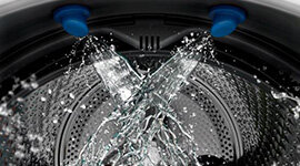 The clever Duospray feature uses dual shower nozzles to thoroughly soak the clothes and a spray pump to maintain the water flow. This means the water and detergent gets thoroughly mixed.