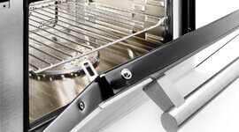 The pyrolytic function uses very high heat to turn food residue inside the oven into ash, which can then be wiped away. To make it even easier, the side racks are enamel-coated so they don’t need to be removed for this function.