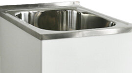 The strong metal cabinet provides a reliable foundation for the sink, while also offering closed storage that helps keep laundry spaces organised and clutter-free.