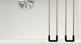 The discreetly designed C-overflow adds to the sink’s clean aesthetic while preventing spills and simplifying upkeep.