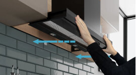 The Integrated Design Rangehood supports easy one-person installation with smart construction and helpful installation aids. Designed as a flexible replacement for integrated or slide-out models, it offers versatile configuration options. An optional chimney extension conceals ducting, while adjustable height allows a seamless fit in cabinets up to 90cm.