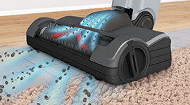 This brush performs well across all floor types. It features an electronic nozzle to make light work of deep-set dust and dirt in high pile carpets.