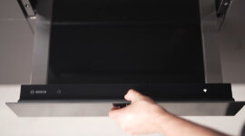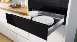 This multifunctional drawer supports four heating modes—plate warming, cup warming, keeping food warm, and slow cooking—each accessible through an intuitive TouchSelect control panel. Its toughened glass heating plate provides even heat distribution and is easy to clean, while the handleless push-pull mechanism ensures smooth, effortless access.