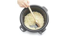 After using the rice setting the Multi Grain Cooker will automatically switch to keep warm mode for up to 5 hours and then switch off. After the risotto setting, it will stay warm for up to 30 minutes and then switch off.