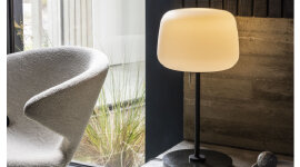 Designed by Terence Woodgate, Soft is a collection of floor and table lights where the beautiful, rounded conic glass shade takes the centre stage. With a three stage touch control to dim the light, the collection is versatile and suitable for use in residential, office and commercial environments. The blown opal glass shade is acid-etched to produce a diffused, soft light, which named the collection.