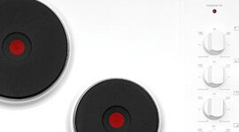 The cooktop surface is finished in white enamel, providing a stylish appearance. This smooth surface is easy to keep clean so it always looks its best.